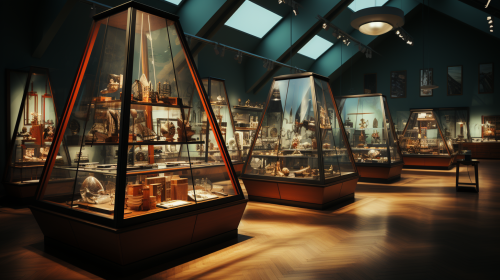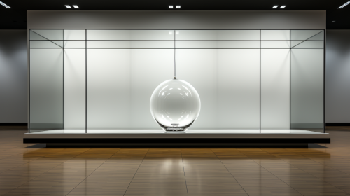 Photo realistic. An all white empty museum display room. A single glass display case showcasing mans greatest invention, --s 1000 --v 5.2 --c 10 --ar 16:9