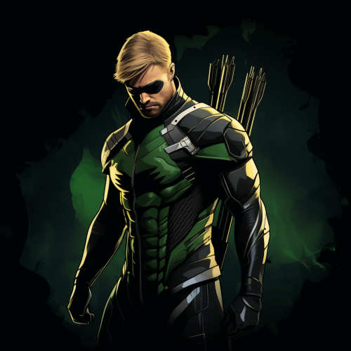 Craft a comic book cover page depicting Green Arrow standing tall, black background, showcasing his impressive, heroic poses, in his classic outift. Incorporate Dan Mora's Comic Book Art Style --s 50