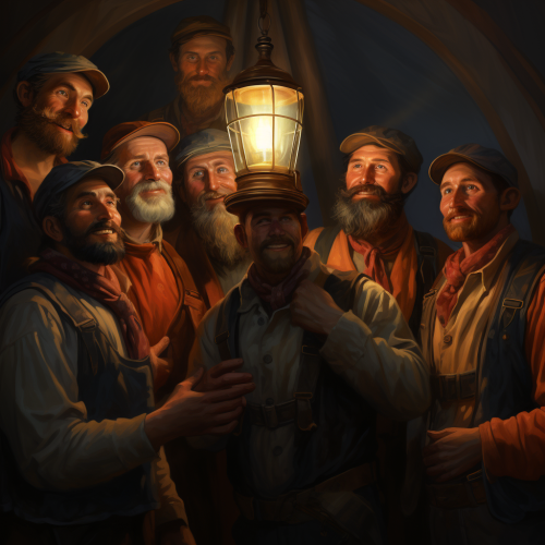 Crew Camaraderie: Members of the crew are depicted in a warm and supportive gathering, representing the strong sense of community within the Lighthouse Crew. They share stories, laughter, and a common purpose beneath the lighthouse's glow.