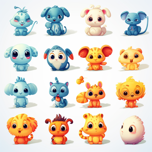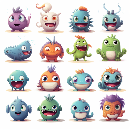 Cartoon-style 2D illustration, for children's picture books, super cute, creatures represented lazy, various expressions, white background