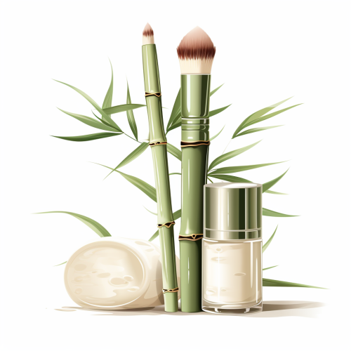 digital Illustration, bamboo and spa cosmetics, green white beige, procreate, isolated on white background