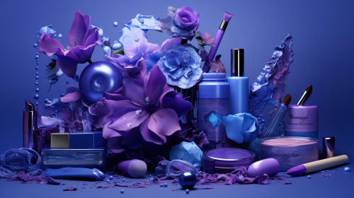 Hyper-realistic. Blue/purple theme. Ultra detailed. Beauty and cosmetics industry --ar 16:9