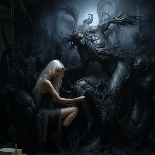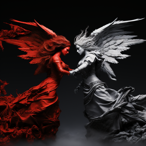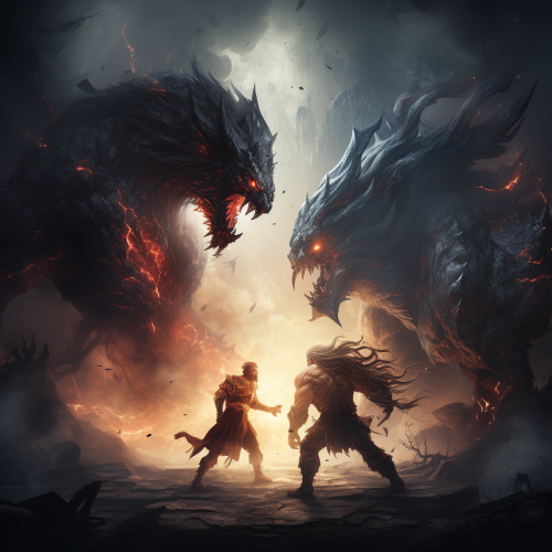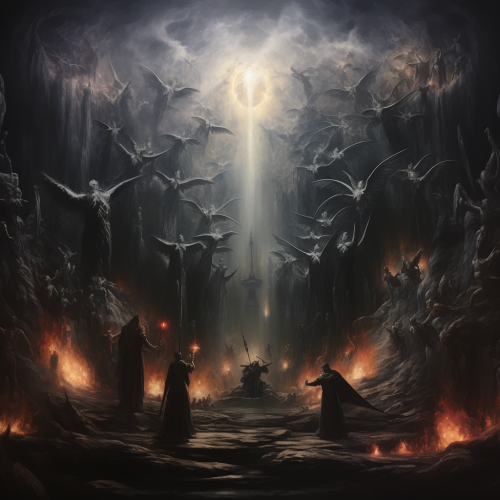 mural of beings of light against beings of darkness, dark fantasy aesthetic, high detail, hyperrealistic.