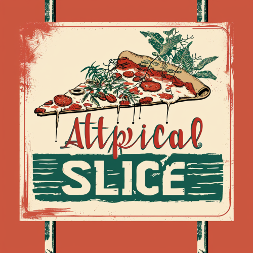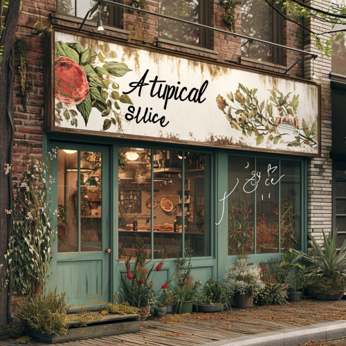 a restaurant sign with a logo for a restaurant named "Atypical Slice". Include an artsy logo representative of Atypical Slice. The logo incorporates plants --v 6.0