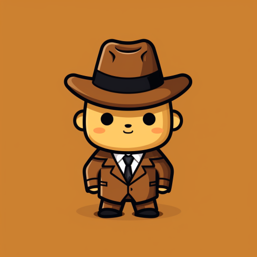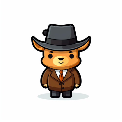 Cartoon cow, kawai, detective costume, brown fedora with cow horns, flat minimalistic logo, modern, simple, vector, 2d, Centered, black outline