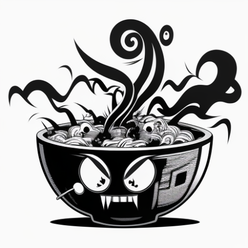 crazy japanese dinner bowl , cartoon design , black n white , vector, --v 4