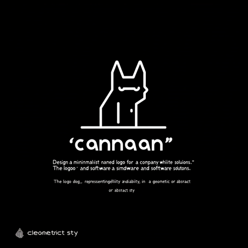 "Design a minimalist black-and-white logo for a company named 'Canaan,' which specializes in IoT hardware and software solutions. The logo should incorporate a simple and sleek dog, representing reliability and loyalty, in a clean geometric or abstract style. The design should convey innovation and technology, with the company name subtly integrated. No unnecessary details, just a modern, professional look."