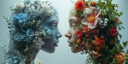 frozen mind and mind full of flowers, opposite, different thinking --ar 2:1 --s 750 --v 6.0