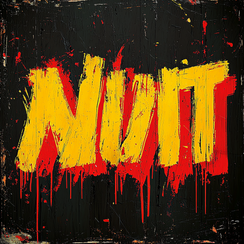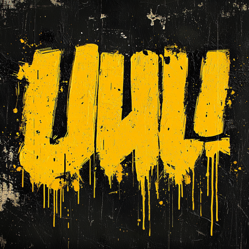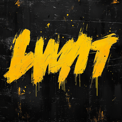 English letters, font design, hand-painted, text on black background , solid background with bright yellow lettering, word written in bold letters with large strokes, sand texture --s 750 --q 2 --v 6.1