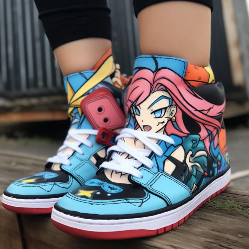 cartoon, anime, hand with long painted nails, on Jordan’s sneakers