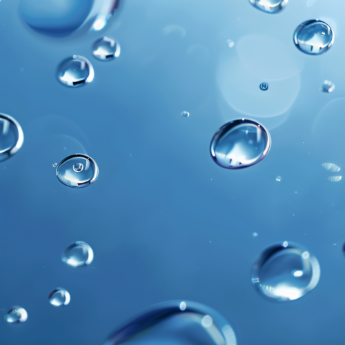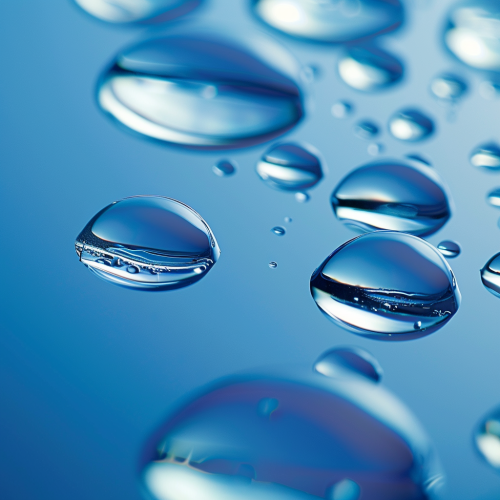 Artistic depiction of transparent water droplets on a medium blue background that is easy to work with for image overlay. The droplets are detailed and clear, with the background providing a smooth, moderate blue tone that does not overpower the image but complements it. Lighting is soft to ensure a seamless integration with other images. Created Using: Artistic style, transparent droplets, medium blue background, smooth gradient, soft lighting --v 6.0