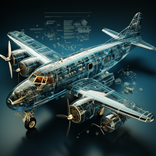 blueprint of standard aircraft design made of crystal, shiny, transparent --s 500