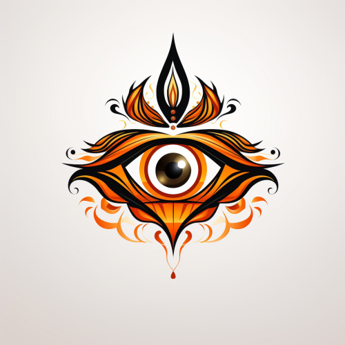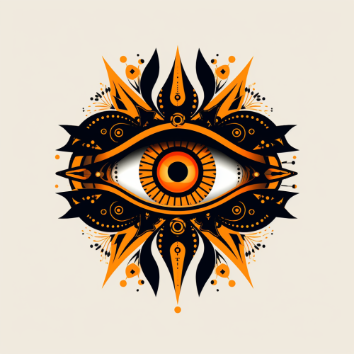 logo design of a third eye for a cultural event association, malika favre aesthetic, black, orange, white outlines, symmetry, light background