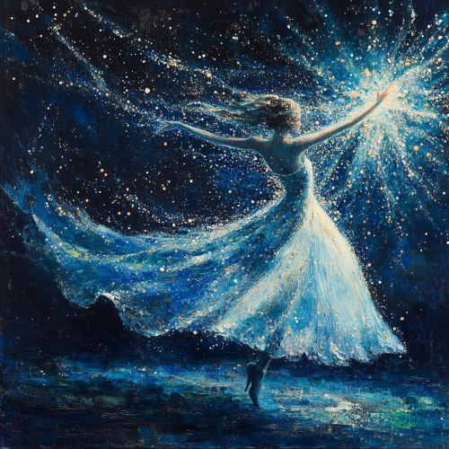 an enchanting night sky showcasing a red star and a blue star in close orbit, their light trails intertwining like a dance of past and future, shimmering particles of red and blue mingling to form delicate constellations, gentle glow casting ethereal reflections, in a detailed anime art style with a dreamy atmosphere, --ar 4:3 --niji 5