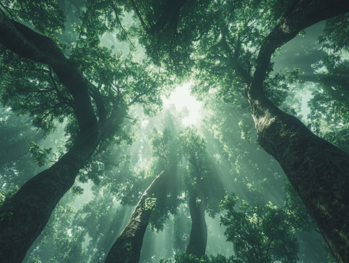 An experienced traveler walking through a lush, overgrown path, shrouded in soft, blurred brushstrokes. The scene is bathed in gentle sunlight breaking through the trees, casting shimmering light and shadows over the figure and the surrounding wilderness. The landscape appears dreamlike, with the forest seeming almost alive, its colors blending into each other. The traveler moves carefully, embodying wisdom and restraint in every step. --s 50 --style raw