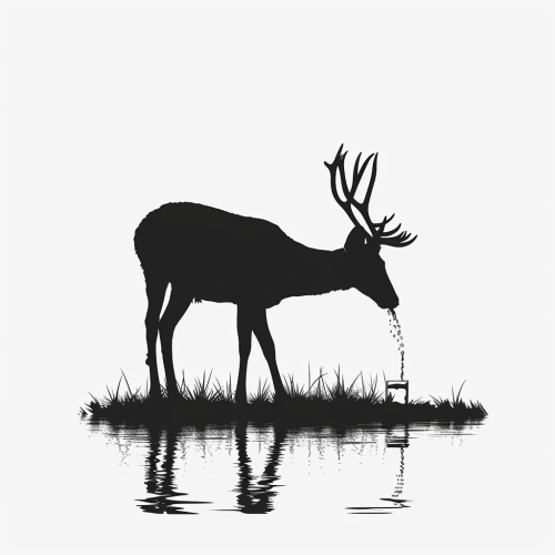 Deer drinking water with reflection in serene nature
