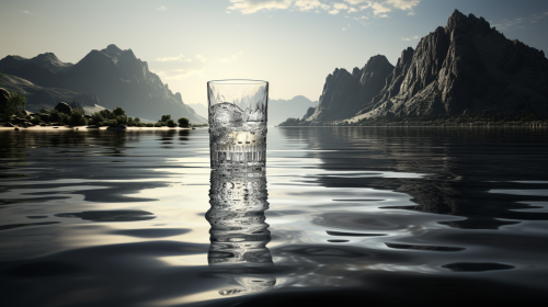a wide dynamic painting of drinking water, crystal clear water, minimal, impactful, realism, unreal engine render, black and white --ar 16:9 --s 400 --upbeta