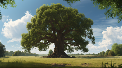 hyper detailed oil painting of a gigantic green oak tree, family tree --ar 500:707