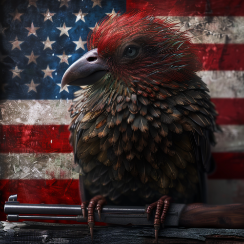 Design of large bird, powerful yet elegant presence, colorful.