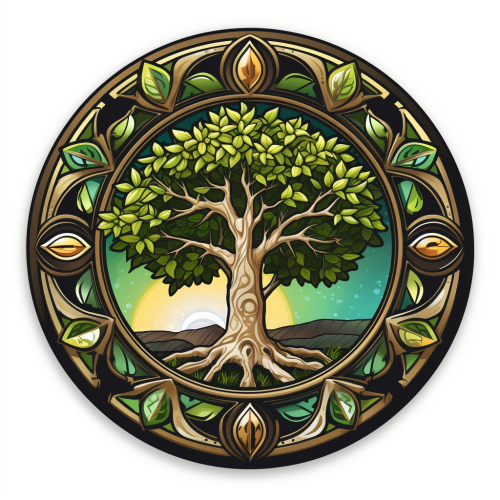 D&D 2D overhead battle map of an anglo saxon village on the coast, pacific northwest theme. Around thirty buildings. In the center of this village is a towering and ancient oak tree surrounded by a marketplace, used for rituals and festivals. --ar 16:9