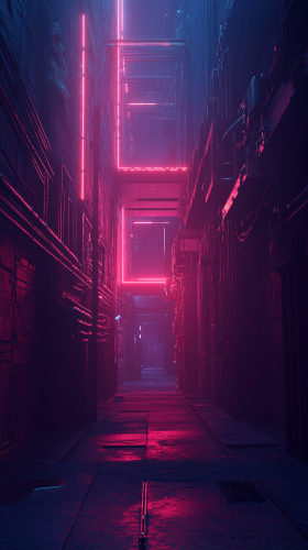 photorealistic dystopian futuristic brutalist megastructure metropolis dark alley, neon lights, atmospheric, no filters, symmetrical. --ar 9:16 --v 6.1