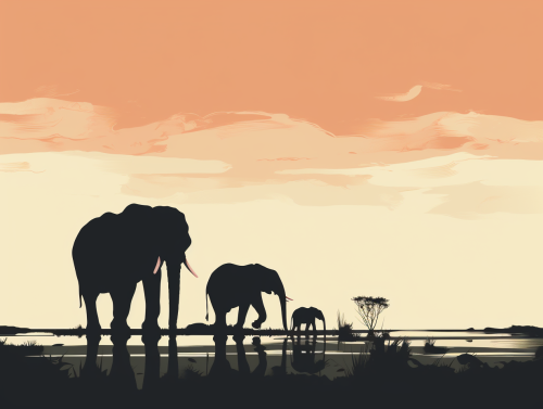 a series of elephant silhouettes portrayed with a simplistic charm, two adult elephants and one baby elephant, utilizing pastel shades and stark negative space, inviting contemplation, in the style of black and white abstraction, bombacore, memphis design, whimsical animation, campcore, synchromism, tagging-like mark --ar 4:3