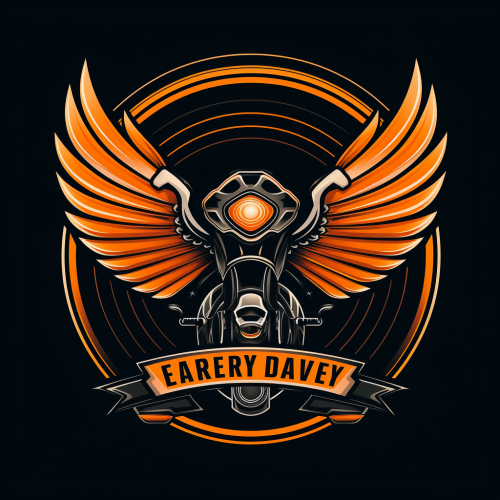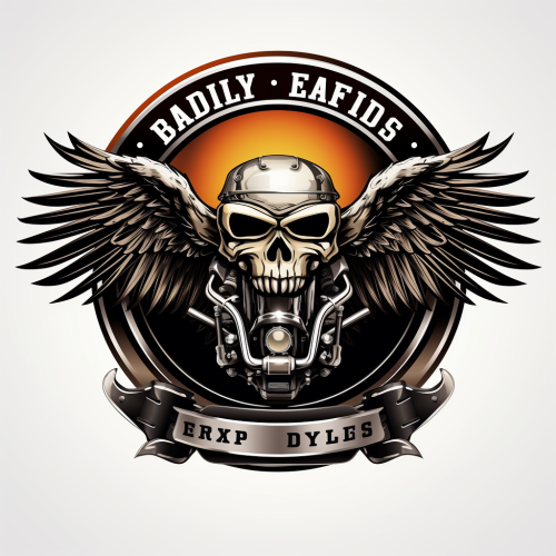 FUTURISTIC AND HYPERREALISTIC LOGO WITH EAGLE WINGS AND HARLEY DAVIDSON MOTORCYCLE WHEEL FOR A GROUP OF BIKERS CALLED EASY RIDERS