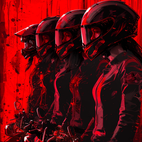 A painting of a group of festive families on bicycles, midsize city urban setting, happiness, in the style of Egon Schiele.