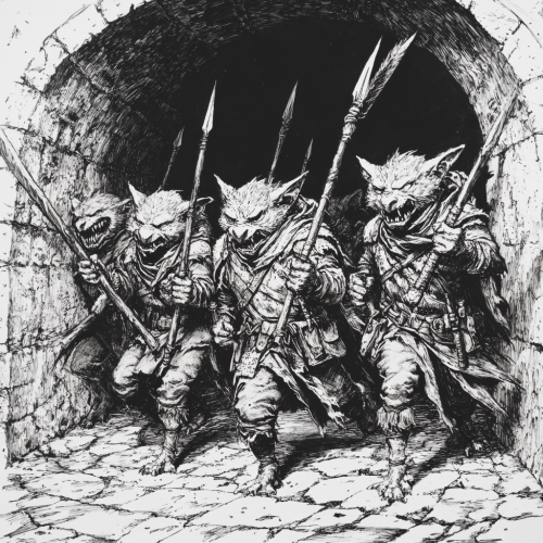 9th century d&d kobolds in sewers working, full body shot, ultra fine detail, ultrarealistic 4k, ultra photorealistic 4k