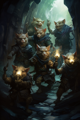 As the party of elves cautiously navigated the twisting tunnels of the cave they suddenly found themselves ambushed by a pack of ferocious kobolds The small scaly creatures swarmed them from all sides their sharp claws and crude weapons leaving deep gashes in the elves armor Desperate to survive the elves fought back with all their might their magic and swords clashing against the kobolds savage attacks in a chaotic flurry of battle. fine details, hyper maximalist, 3D rendering, C4D, depth of field, high-definition photography, natural lighting, full HD 8K --ar 16:9 --stylize 750 --v 6.1 --chaos 7 --weird 2