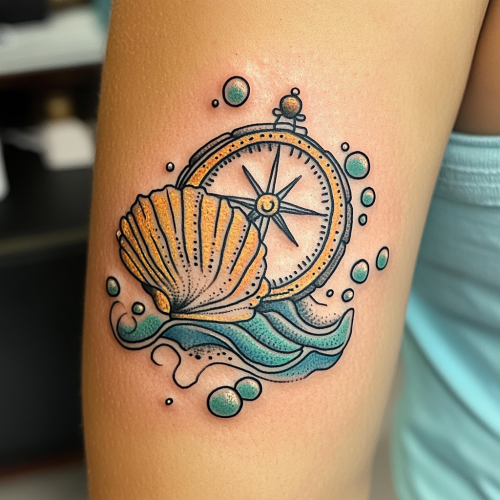 Create a highly detailed, realistic arm sleeve tattoo design featuring Charon, the ferryman of the underworld from Greek mythology. Depict him as an eerie, cloaked figure, with a weathered face partially hidden beneath a hood, standing at the edge of the River Styx. In one hand, he grips a long oar, ready to guide souls across the dark waters. His boat, shadowy and ancient, should float in the background, filled with faint, ghostly silhouettes of souls. Surround Charon with mist and swirling shadows, with the river reflecting the darkness of the underworld. Integrate crumbling ruins, skulls, and other ancient symbols of death to enhance the somber atmosphere. Include subtle details, like coins placed on the eyes of the souls or floating in the water, symbolizing the toll for passage. This design should blend mystery and mythology, creating a powerful depiction of Charon's role in guiding souls to the afterlife.