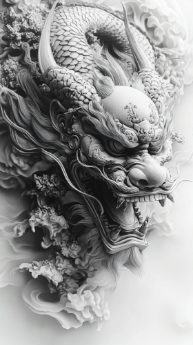 ola, quero um design para uma tatuagem no bÃceps, quero uma arte em que esteja uma gueixa com o rosto semi de lado mas que de pra ver os dois olhos dela, quero os olhos abertos, e quero elementos envoltos nesse design como se fosse tudo uma coisa só, bem harmoniosa com fundos esfumçados no estilo black and gray, elementos japoneses, e pedaços de uma máscara japonesa se quebrando e flutuando na imagem, imagina um design de tatuagem preto e cinza realista, é isso que eu quero, mas quero o design sem estar na pele, quero um design pronto pr ser impresso
