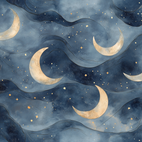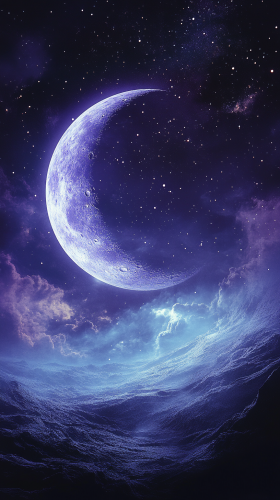 A minimal cosmic scene with a gentle lavender background, a few glowing stars spread evenly, and a softly illuminated crescent moon floating gently in the upper corner--calm and spacious. --ar 9:16 --style raw --s 250