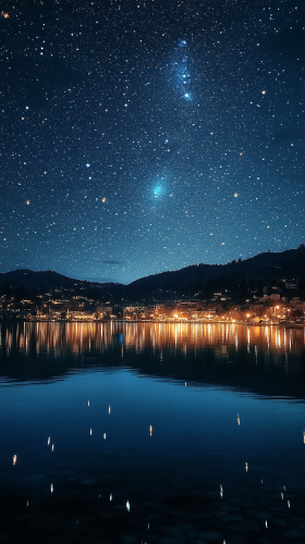 Max resolution that it can be created, great feeling and atmosphere, Create an image of A sky full of stars above the beautiful lake city in California Stars light up the sky so bright beautiful scene great atmosphere and super catchy the Max resolution that you can generate, max details, most beautiful feeling and atmosphere, great joy, get me the realistic image Camera: DSLR - Canon EOS 5D Mark IV. Lens: Canon EF 24-70mm f/2.8L II USM. Composition: Wide shot, room-centered, horizontal. Film: Digital, high resolution, color profile sRGB. Camera settings: ISO 400, f/2.8, 1/60 sec. --ar 9:16 --v 6.1 --s 250