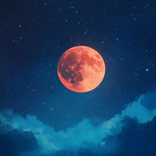 Craft an enchanting illustration where the celestial elements take center stage--a vast sky adorned with myriad stars and a colossal, luminous moon dominating the canvas. Utilize graceful, swirling lines to depict the celestial dance of stars and the moon's radiant presence, filling most of the illustration. Illustrate the moon as a captivating focal point, radiating its soft, ethereal glow across the expanse. Let the stars twirl and spiral in whimsical patterns around the moon, creating a celestial symphony against the night sky. Beneath this cosmic display, portray a lush jungle embraced by the moonlight's gentle touch. Employ intricate yet fluid lines to outline the foliage and trees, capturing the dreamlike quality of the nighttime scenery. Utilize a captivating illustration style that merges the cosmic beauty of the sky with the enchanting details of the jungle below, blending the fluidity of the celestial lines with the intricacies of the jungle's foliage. --ar 16:9 --v 6.0