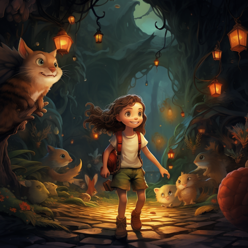 create a series of images that depict Lily's time in The Enchanted Glen. In the first image, show Lily engaged in playful activities with the talking WITH MANY OF animals, exuding joy and camaraderie. In the second image, portray her singing with the birds, surrounded by a chorus of colorful feathered friends. In the final image, capture the essence of Lily as she learns the secrets of the forest, with ancient trees and mystical beings sharing their wisdom. These images should convey the magic and harmony of Lily's days in this enchanting realm, seed 1459455278, animation 8k