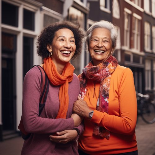 Craft a vivid visual for the 'Hoorn Fit en Gezond!' campaign: Imagine two Dutch women, both around 50 years old, actively engaged in the 'Hoorn Fit en Gezond!' program. One woman, of Arab descent, wears a headscarf, and the other has a distinct Dutch background. They are both at a vibrant gym, energetically participating in exercises specially tailored to their curvier figures. Image1080x1920 Illustrate moments of these women participating in the 10-week program, highlighting their dedication during the initial 0-measurement, the progress check at 5 weeks (1-measurement), and the final measurement at 10 weeks. Place the BLCN-certified lifestyle coach in a position where there's space for a slogan or text, emphasizing the importance of sustainable behavioral change. Convey the supportive community atmosphere of the gym, symbolizing various local fitness partners involved in the program. Emphasize tangible and achievable health benefits to resonate with the rational mindset of Hoorn residents. Feel free to include local landmarks or symbols to enhance the connection with the community and make the imagery relatable to the target audience.