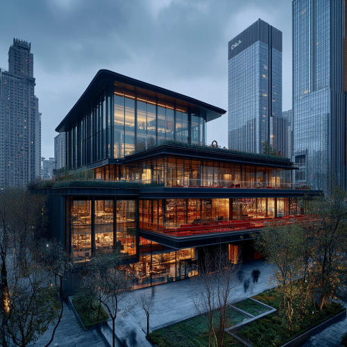 On both sides are cities. At noon, the golden sunshine shines on the city, creating a complete and warm city with rich colors. Front view, creating a high-definition and realistic style --ar 16:9 --s 750 --v 6.0
