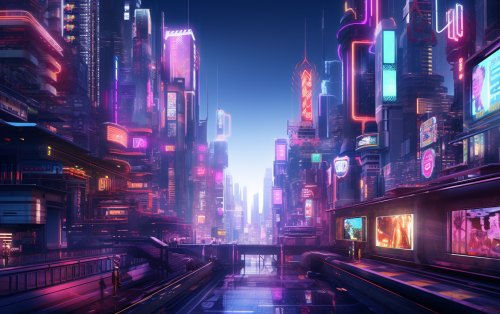 a cyberpunk cityscape, vaporwave color scheme --v 6.0