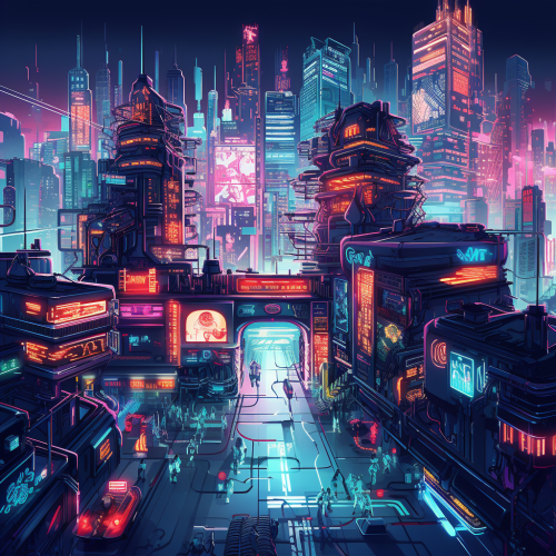 a hyper-detailed photorealistic realistic photo of a dystopian neon cyberpunk city with orange and purple lights, --ar 16:10