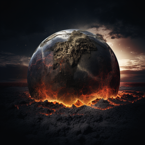The earth's fiery birth, a primal scream echoing across the universe, molten lava pouring from the core of the planet, mountains rising from the ground, oceans violently churning, a newly formed planet bathed in the glow of distant stars, cosmic energy swirling around, intense and awe-inspiring, cinematic, high-resolution, 8K, UHD --s 750 --style raw --v 6.0 --ar 16:9