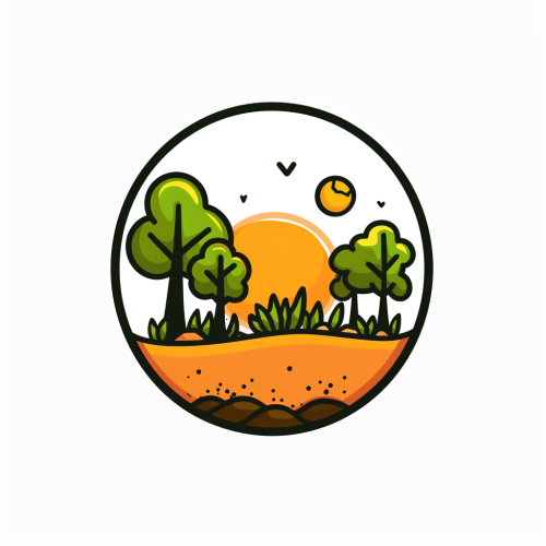 creative logo that uses a simple drawing of a circular terrarium, perfect circle, nothing outside the circle, childlike, trees, plants, soil, leaves, simple lines, minimalist, planet, iconic, icon, white background, white backdrop, earth era, eye popping, vivid 4k --ar 1:1