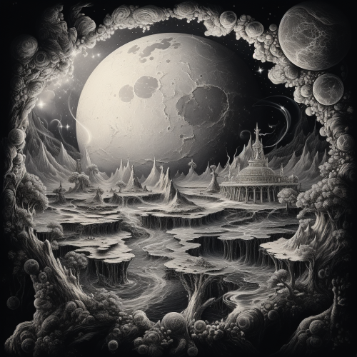 black and white drawing of the earth seen from space in the style of Jan Brueghel the Elder