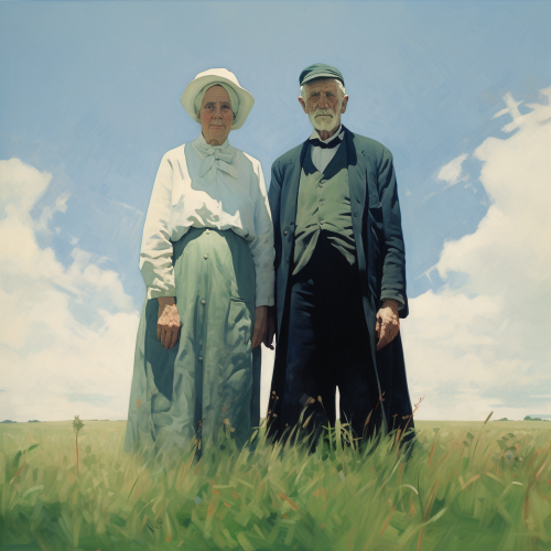 n c wyeth illustration of two elderly english people standing in green field