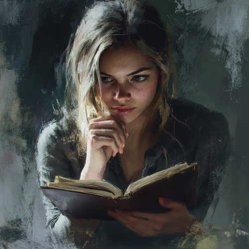 The portrait captures only the face of the elderly woman, with a particular emphasis on how it is subtly distorted by the memories and emotions evoked by the essay she watches unfold on the screen. The greenish glow of the monitor--Fern-Green--casts an eerie, almost unnatural light across her features, blending reality with the echoes of her past. Her eyes, once hazel, now appear as deep pools of shadowed green, their irises slightly enlarged and distorted, as though they are struggling to contain the flood of memories the screen is drawing out. The green light creates a ripple effect in her eyes, giving them a glassy, almost otherworldly quality, as if the images she watches are not just before her but within her, distorting her very perception of the present. The wrinkles and creases on her face, normally a testament to age and experience, are exaggerated in this portrait. The lines seem to carve deeper into her skin, as though etched by the very struggles and sorrows the essay recounts. The green light accentuates these lines, causing them to twist and warp, almost as if her face is being pulled in multiple directions by the weight of her memories. The sag of her skin is more pronounced, giving her face a slightly elongated, stretched appearance, reflecting the internal tension and turmoil she feels. Her lips, usually thin and tight, now appear slightly uneven, one corner pulled higher than the other, as though caught in a moment of suppressed emotion. The green light causes the skin around her mouth to tighten and crack, adding to the sense of distortion. The tension in her jaw is more visible, with the muscles subtly exaggerated, as if she is clenching her teeth against the memories that the screen forces her to confront. Her silver hair, pulled back, is [...]