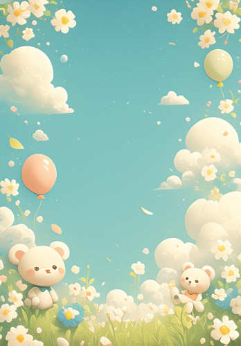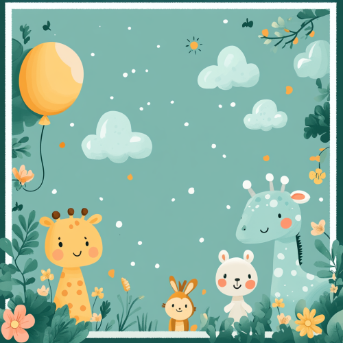 Clean and child-friendly A4 page background design for a kindergarten newsletter. The background should include soft pastel colors such as green, light blue or pink. Include subtle patterns such as dots or circles and adorable illustrations such as a balloon, toys, clouds, small animals The design should fit a text layer, with wide margins and a spacious central area. The overall look should be warm and inviting, perfect for communicating with parents, Create the frame with only white background, no flower --niji 5 --ar 16:23 --s 750