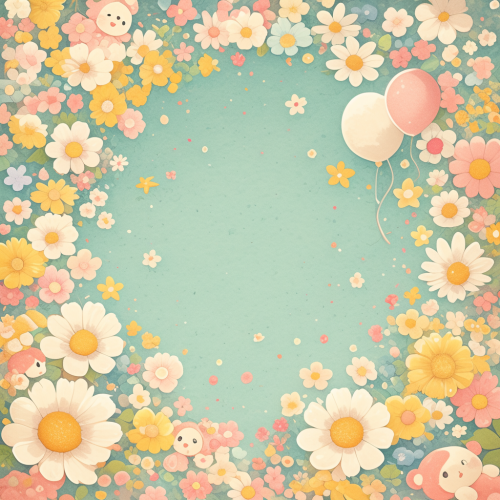 Clean and child-friendly A4 page background design for a kindergarten newsletter. The background should include soft pastel colors such as green, light blue or pink. Include subtle patterns such as dots or circles and adorable illustrations such as a balloon, toys, clouds, small animals or small children. The design should fit a text layer, with wide margins and a spacious central area. The overall look should be warm and inviting, perfect for communicating with parents, Create the frame with only white background --niji 6 --ar 16:23 --s 750