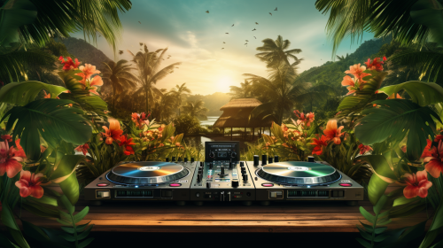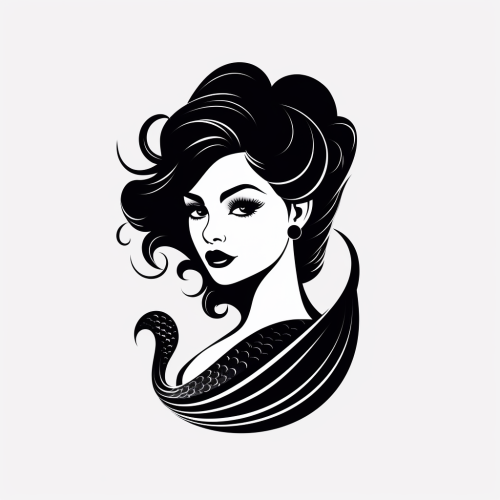 Make me a realistic black and white logo. The logo is an alternative mermaid character with masculine features and mixing electronic music. She has short hair