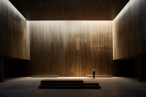 a photograph depicting an elegant modern timber desk in the style of architect Peter Zumthor filling much of the frame, cinematic lighting, anti-aliasing, 8K --ar 3:2