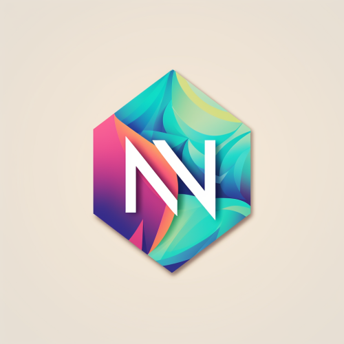 Company Logo for N with many colors, Knock on door, simple, geographic design, vector style, flat, warm tones of blue, green, and pink, be energetic, Employee well-being, employee benefits, employee care, employee outing, fun